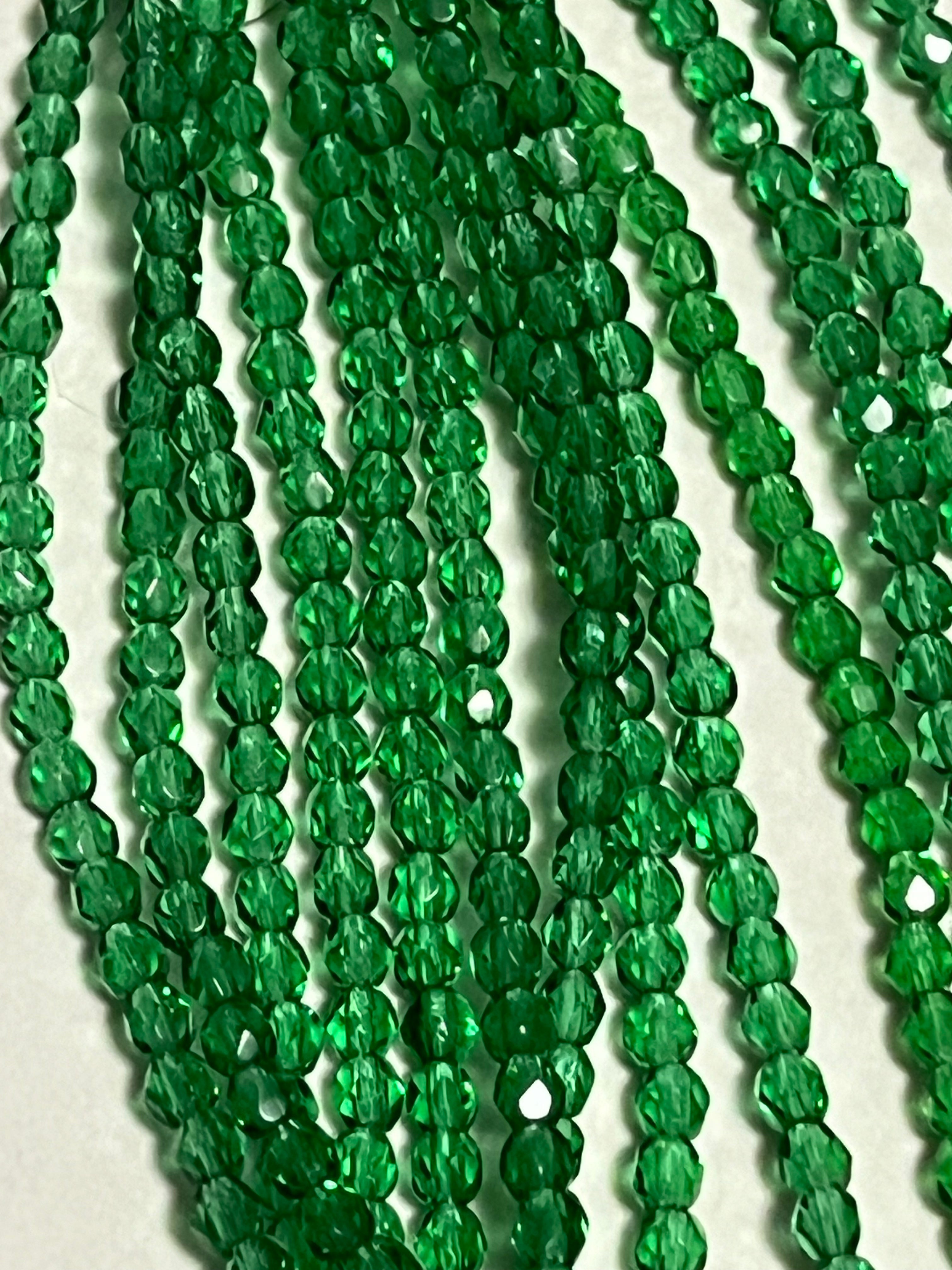 These 3mm Fire Polished beads are sold by the 6" (15cm) strand. Each strand has approximately 50 beads. The hole is approximately .5mm.