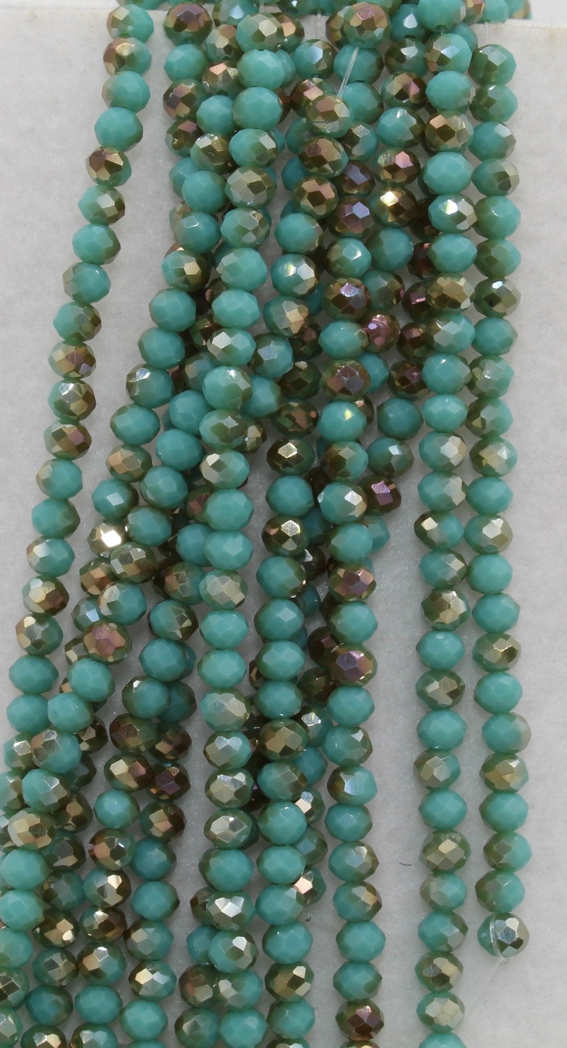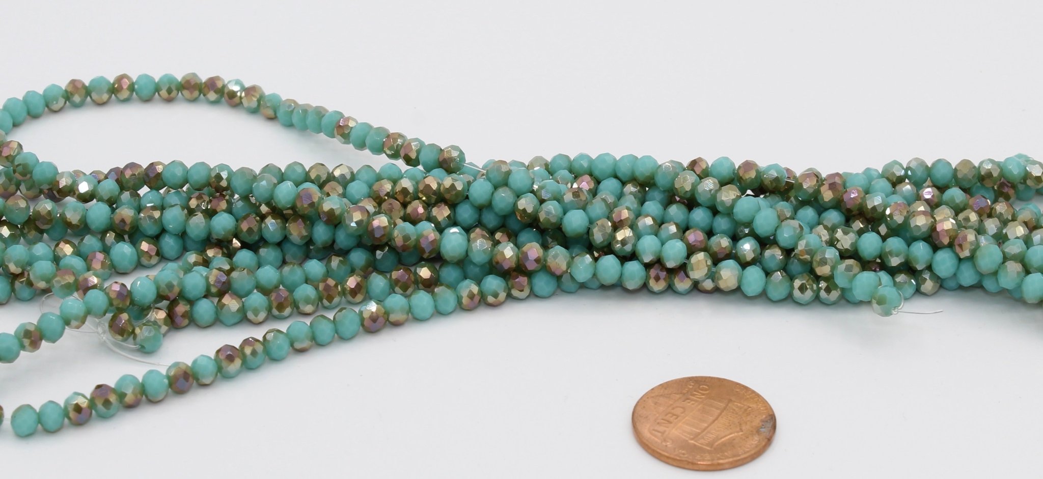 Green Turquoise with Gold Iris - 3 x 4mm Faceted Rondelles