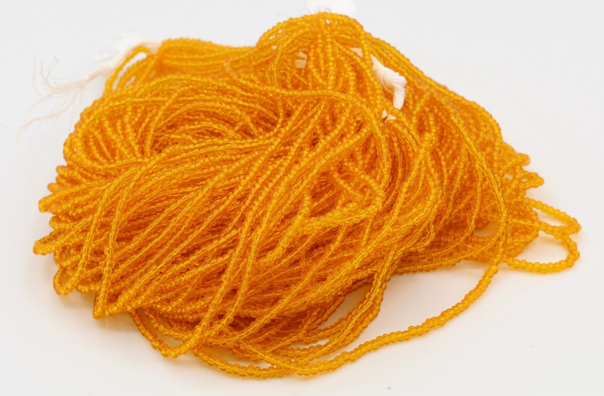 These beads are sold by the hank. Each hank has 12 strands with a total of approximately 4,000 beads. Lined up on a needle, roughly 17 beads = 1 inch (25mm).