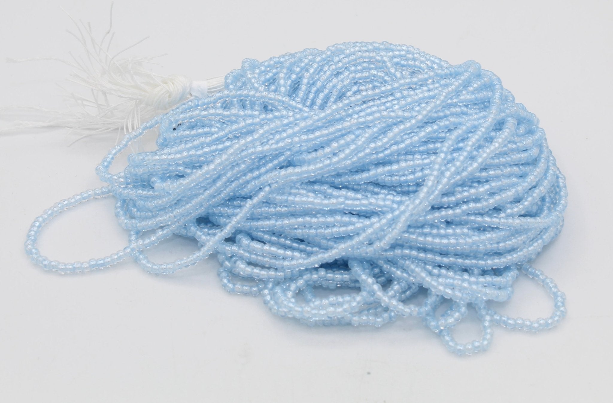 These beads are sold by the hank. Each hank has 12 strands with a total of approximately 4,000 beads. Lined up on a needle, roughly 17 beads = 1 inch (25mm).