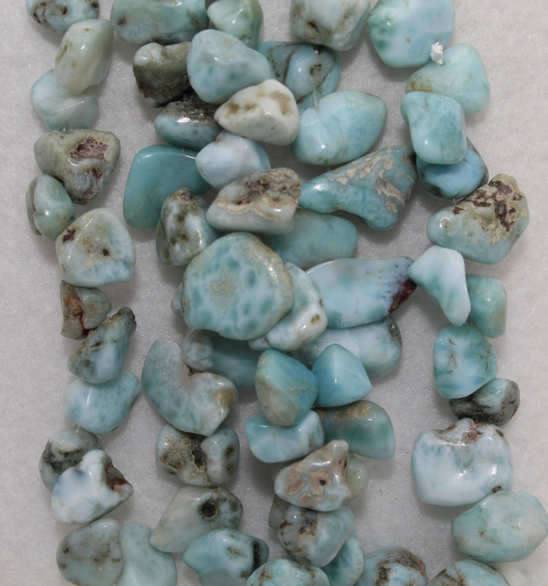 These Larimar beads are approximately 6 - 10mm (.25" - .4") and are sold on an 8” (20.5cm) strand. There are approximately 60 beads per strand.