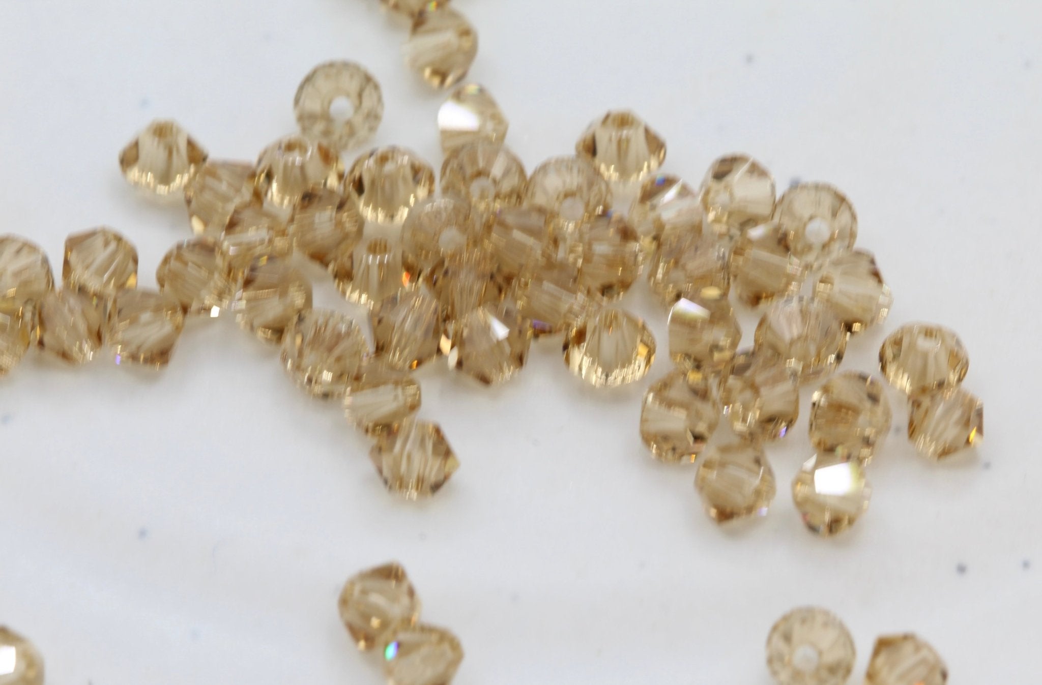 These Swarovski Crystal bicone beads are 3mm. They are sold in a 1/2 gross package (72 beads).