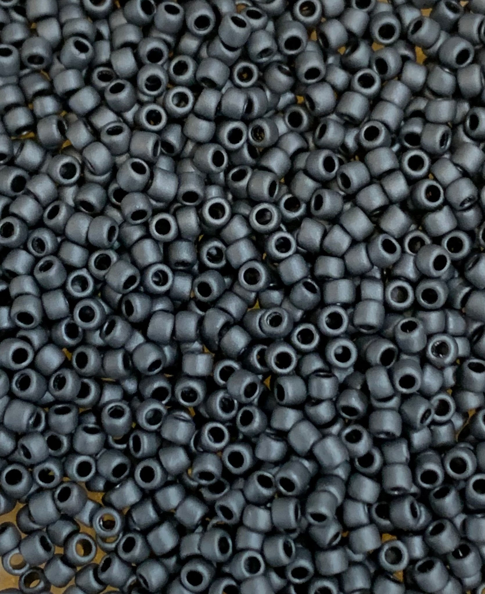 Size 15/0 Toho seed beads measure 1.5mm x. 1.3mm with a .7mm hole size. They are sold in a 14 gram tube (approximately 4090 beads). They are slightly more tubular than round (Miyuki size 15/0 are more rounded.)
