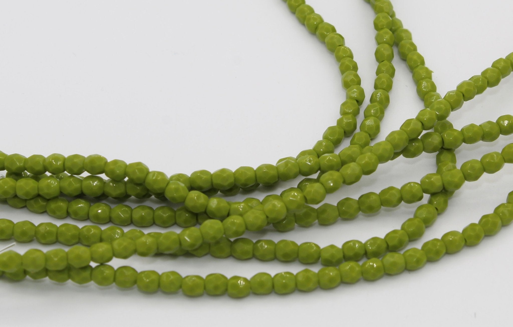 These 3mm Fire Polished beads are sold by the 6" (15cm) strand. Each strand has approximately 50 beads. The hole is approximately .5mm.