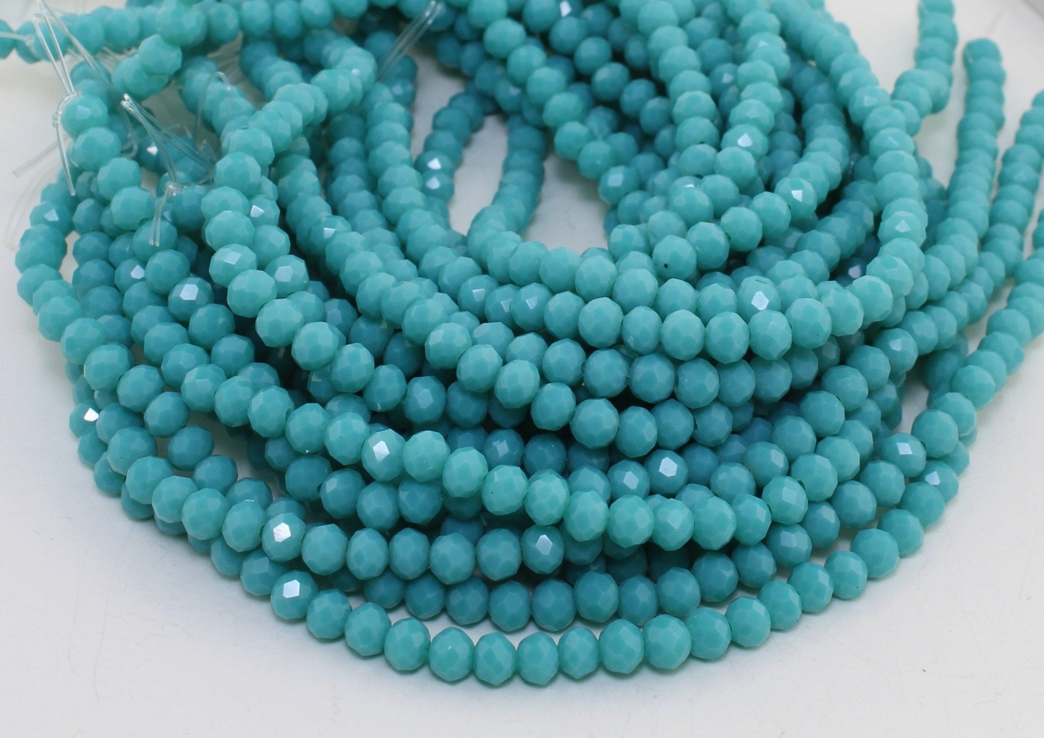 Opaque Turquoise Blue - 3 x 4mm Faceted Rondelles
