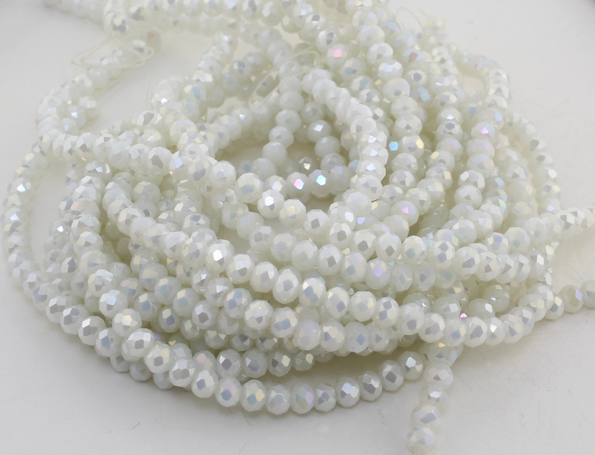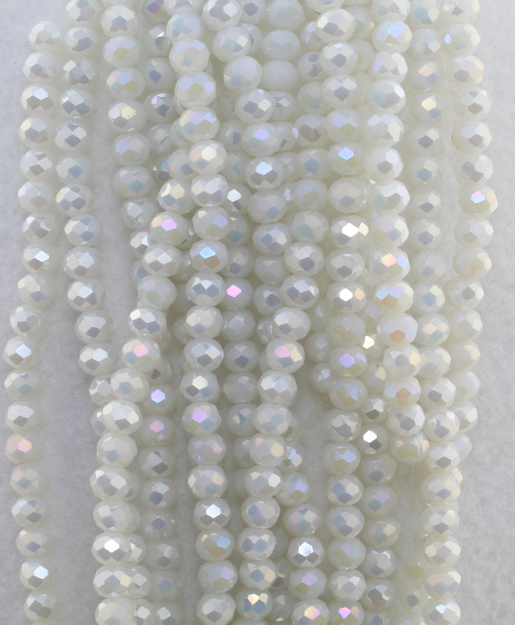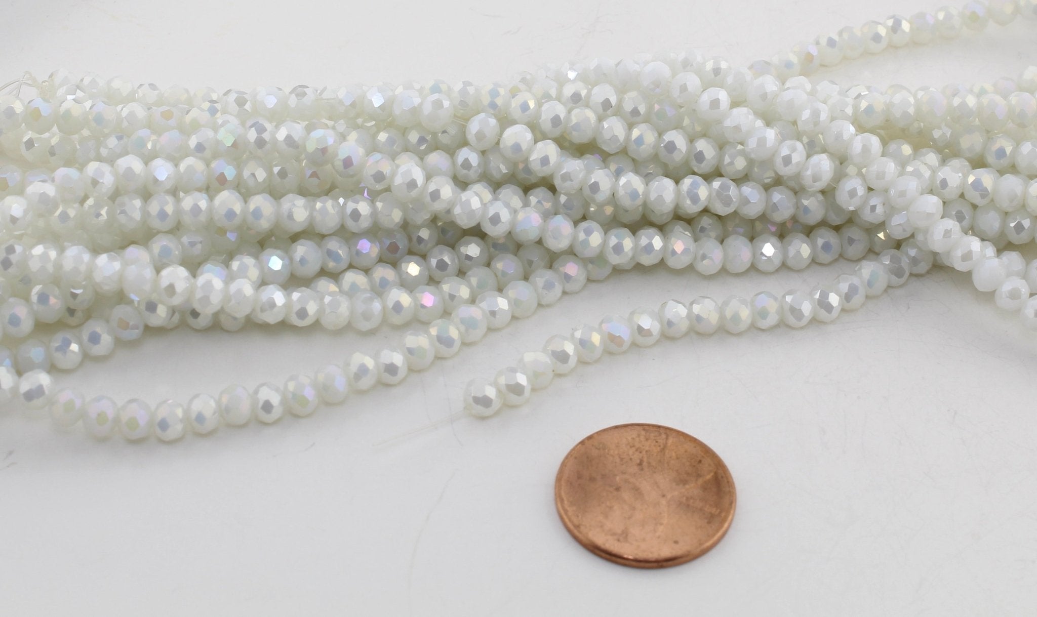 Opaque White AB - 3 x 4mm Faceted Rondelles