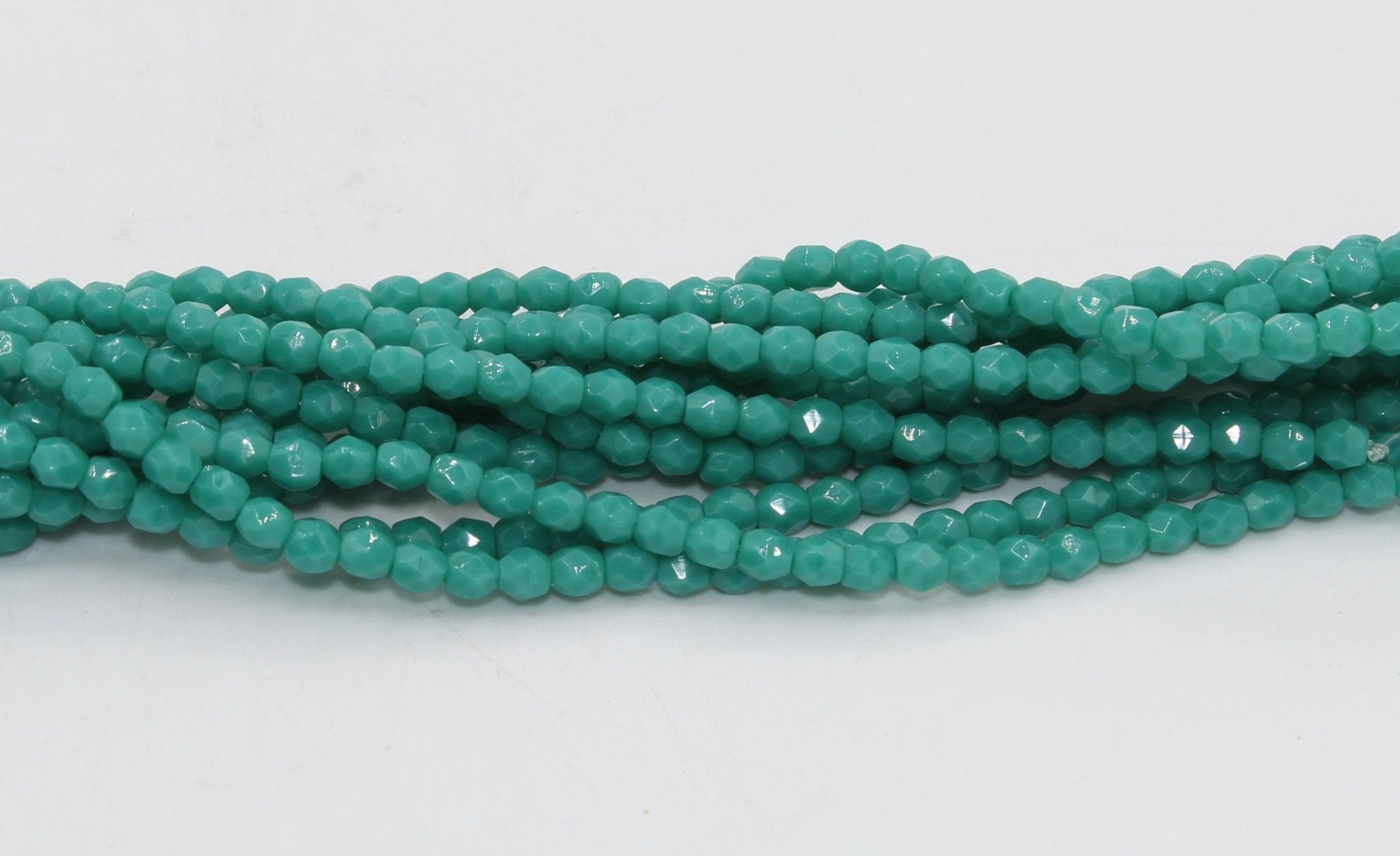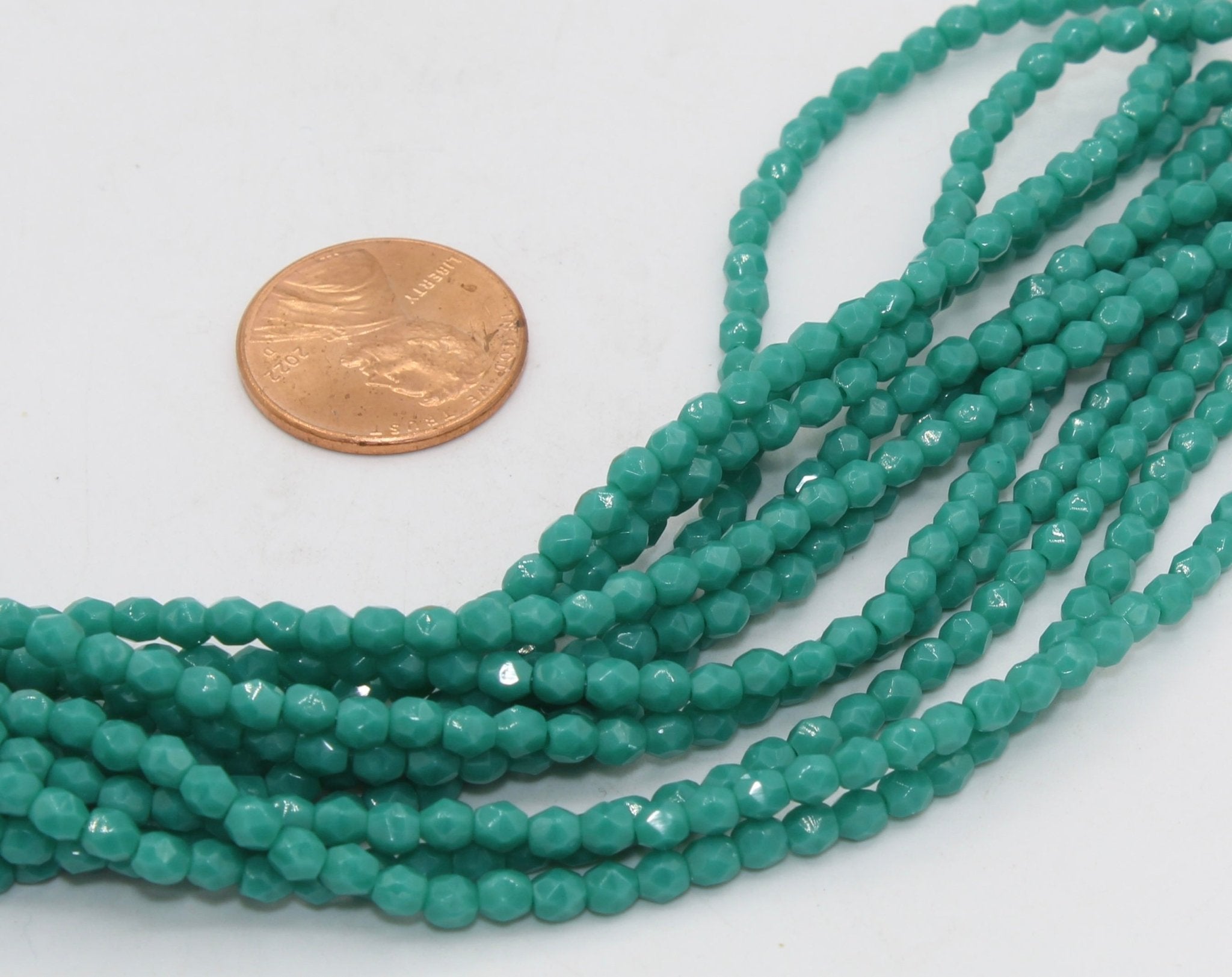 These 3mm Fire Polished beads are sold by the 6" (15cm) strand. Each strand has approximately 50 beads. The hole is approximately .5mm.