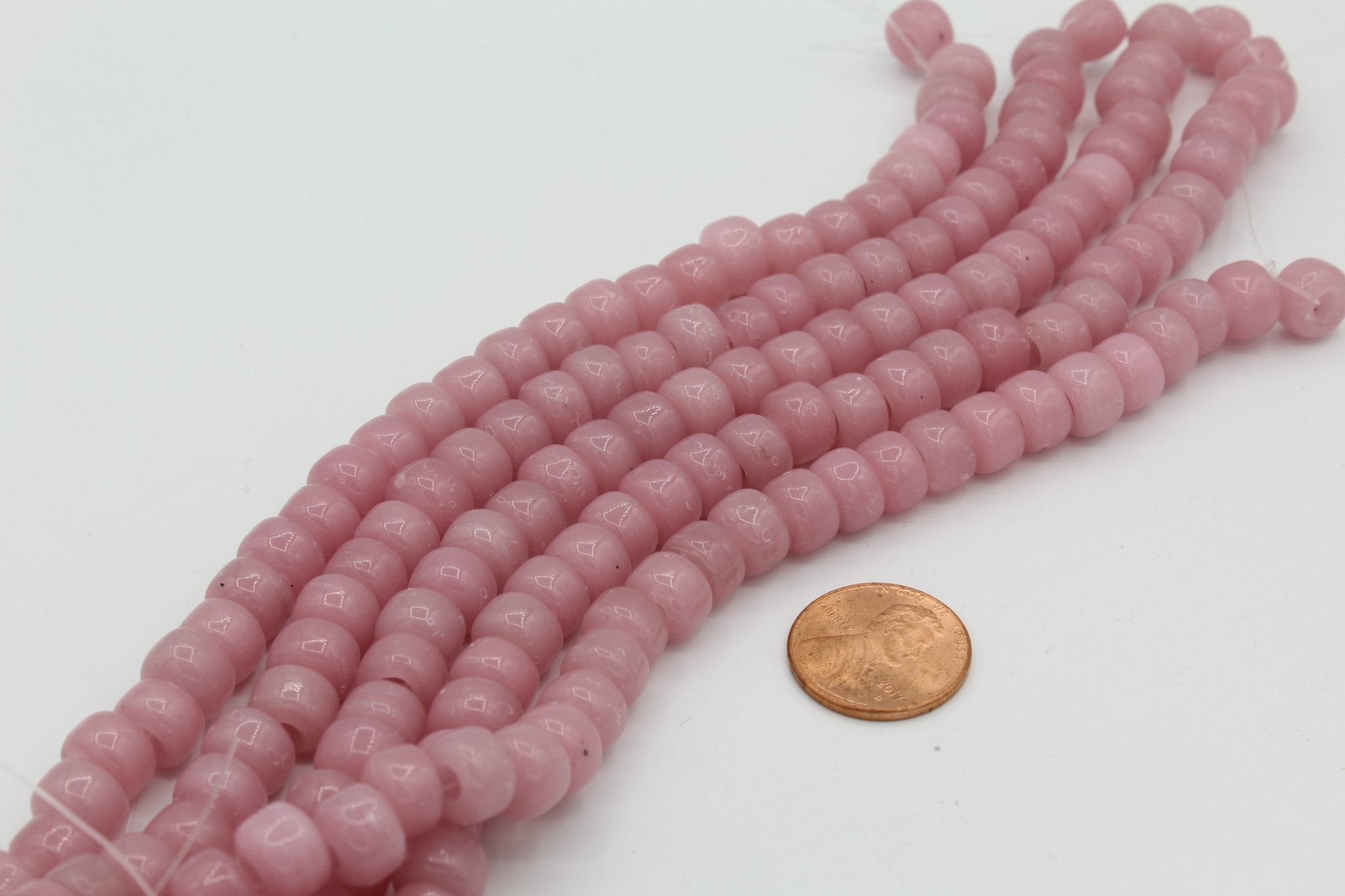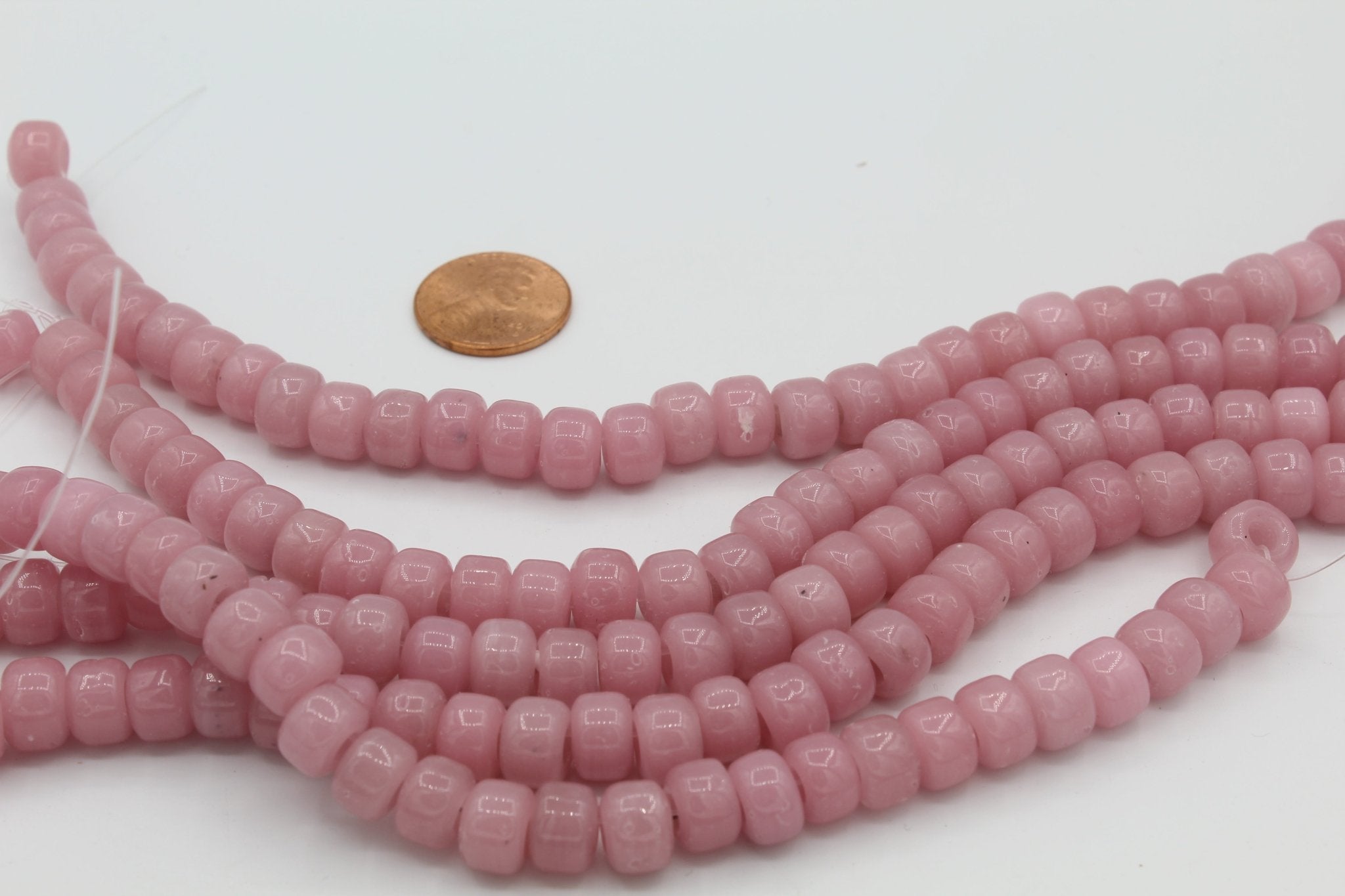 These are glass standard size Crow beads. Standard size Crow beads refer to a particular size of bead (6 x 9mm wide with a 2.5 mm hole) used in traditional Native beadwork.