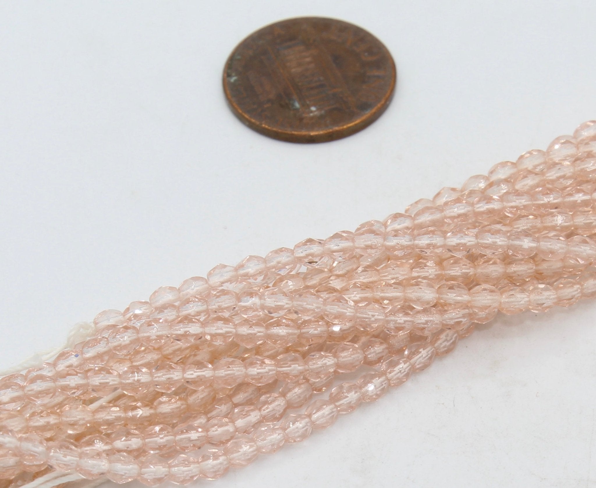 These 3mm Fire Polished beads are sold by the 6" (15cm) strand. Each strand has approximately 50 beads. The hole is approximately .5mm.