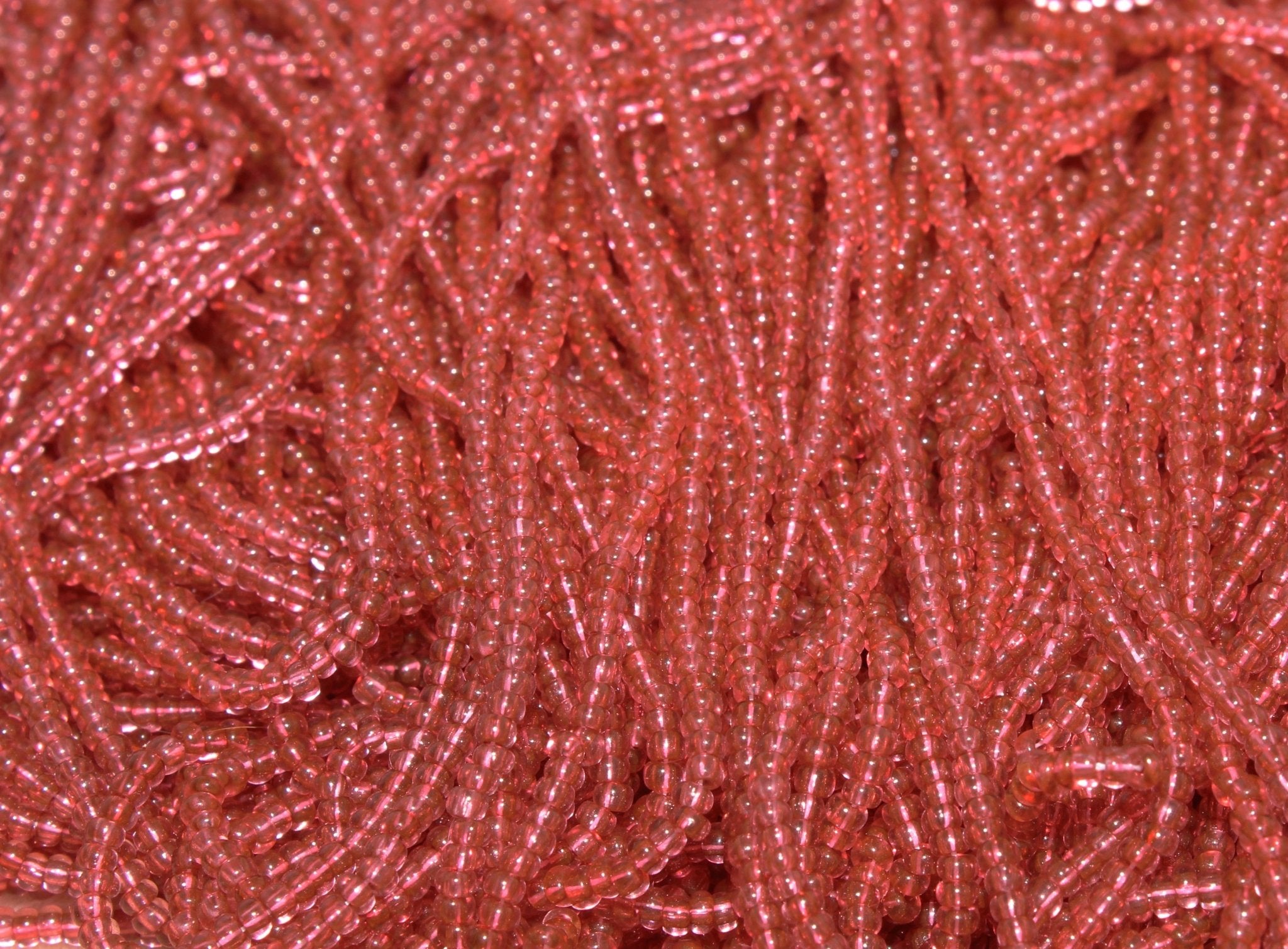 These beads are sold by the hank. Each hank has 12 strands with a total of approximately 4,000 beads. Lined up on a needle, roughly 17 beads = 1 inch (25mm).