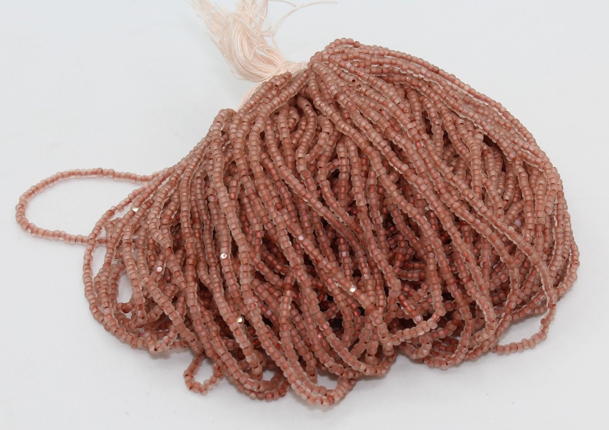 These glass beads are size 11/0 Charlotte cut seed beads. Cut beads have more sparkle in them due to the definitions created by the cut pattern. They can be used alongside non-cut seed beads of the same size.