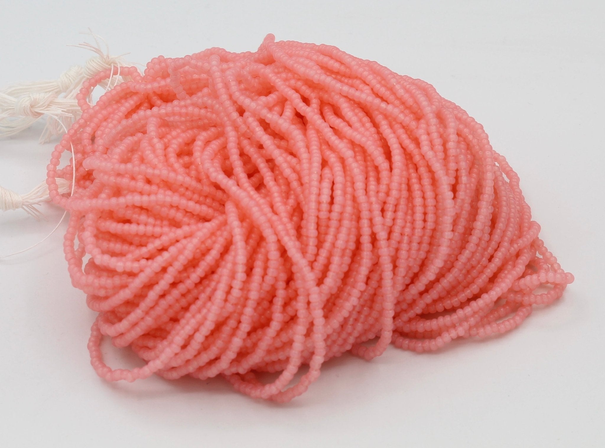 These beads are sold by the hank. Each hank has 12 strands with a total of approximately 4,000 beads. Lined up on a needle, roughly 17 beads = 1 inch (25mm).