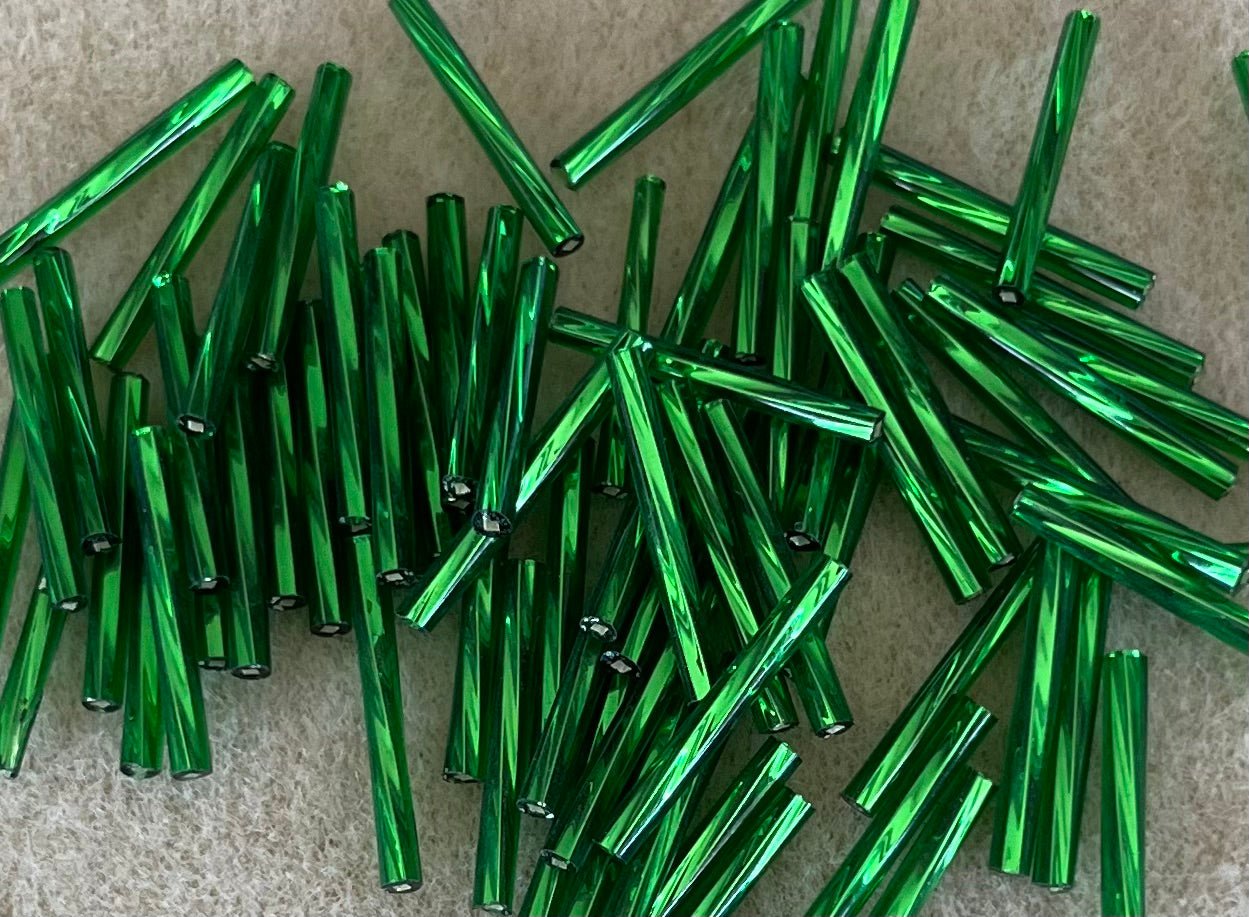 Silver Lined Emerald 20mm Twist Bugle Beads - 20010