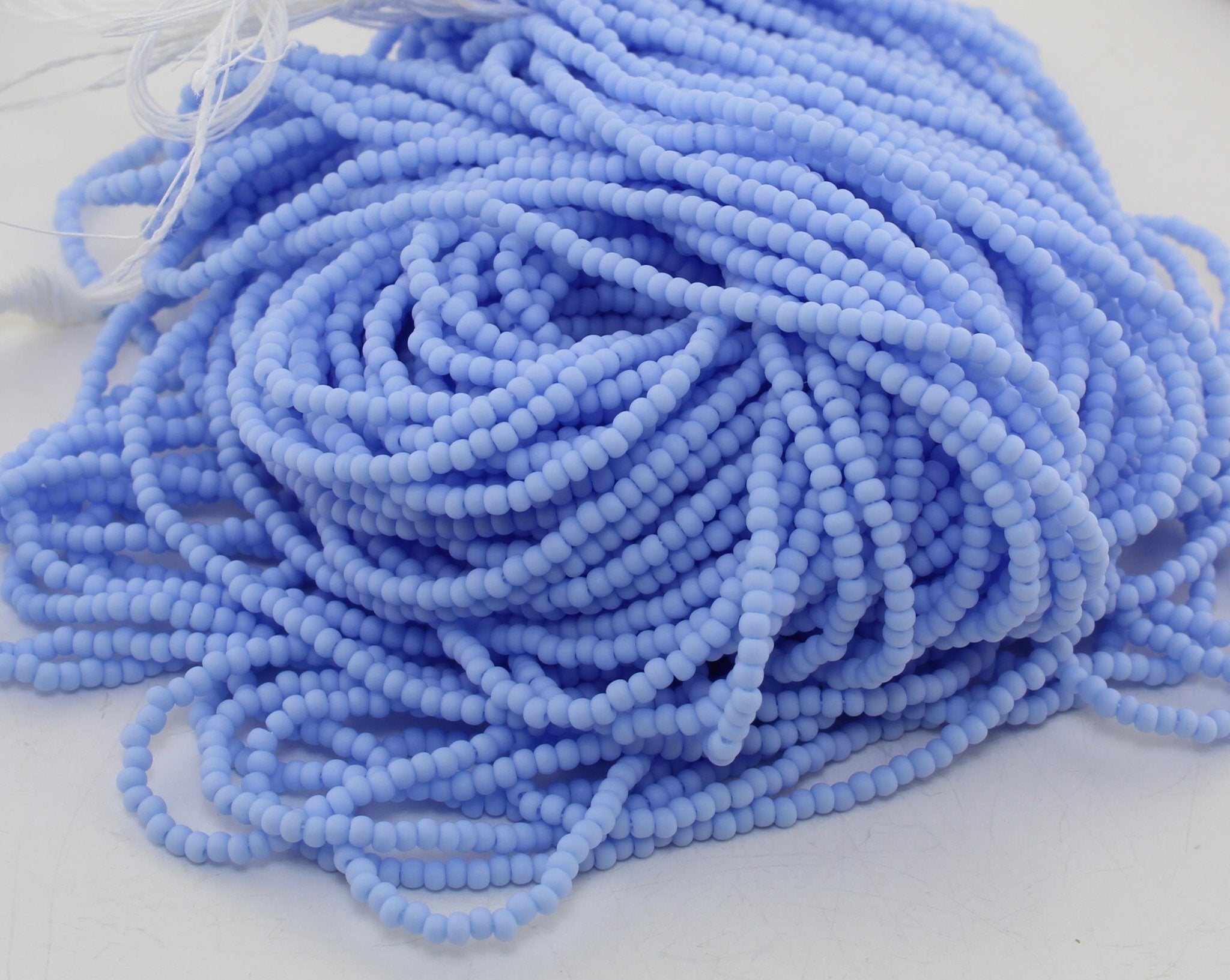 These beads are sold by the hank. Each hank has 12 strands with a total of approximately 4,000 beads. Lined up on a needle, roughly 17 beads = 1 inch (25mm).