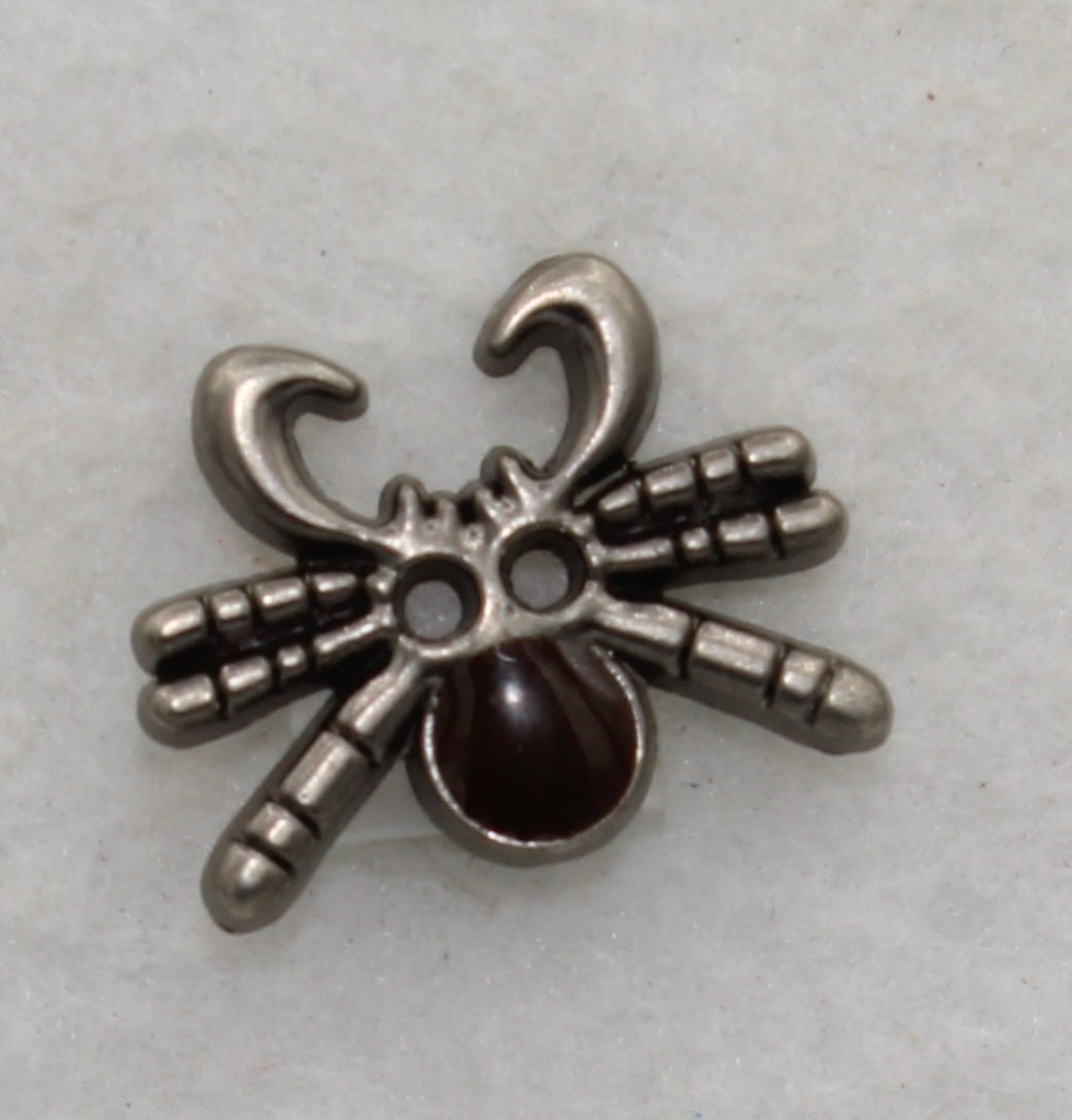 These spider buttons have 2 holes and are approximately 3/8” x 1/2” in diameter.