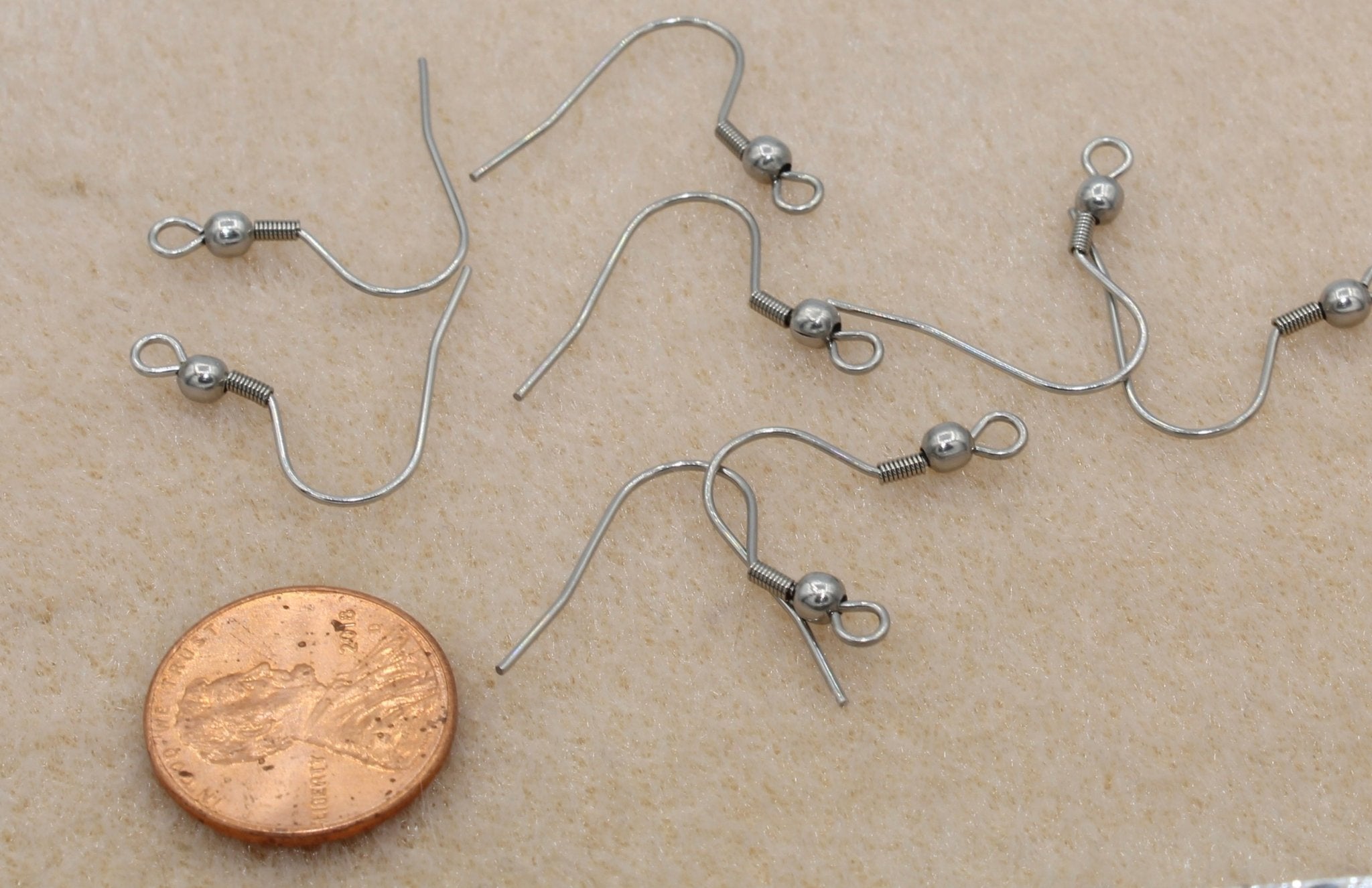 These stainless steel ear wires are 20mm long. They have a metal ball and coil embellishment.
