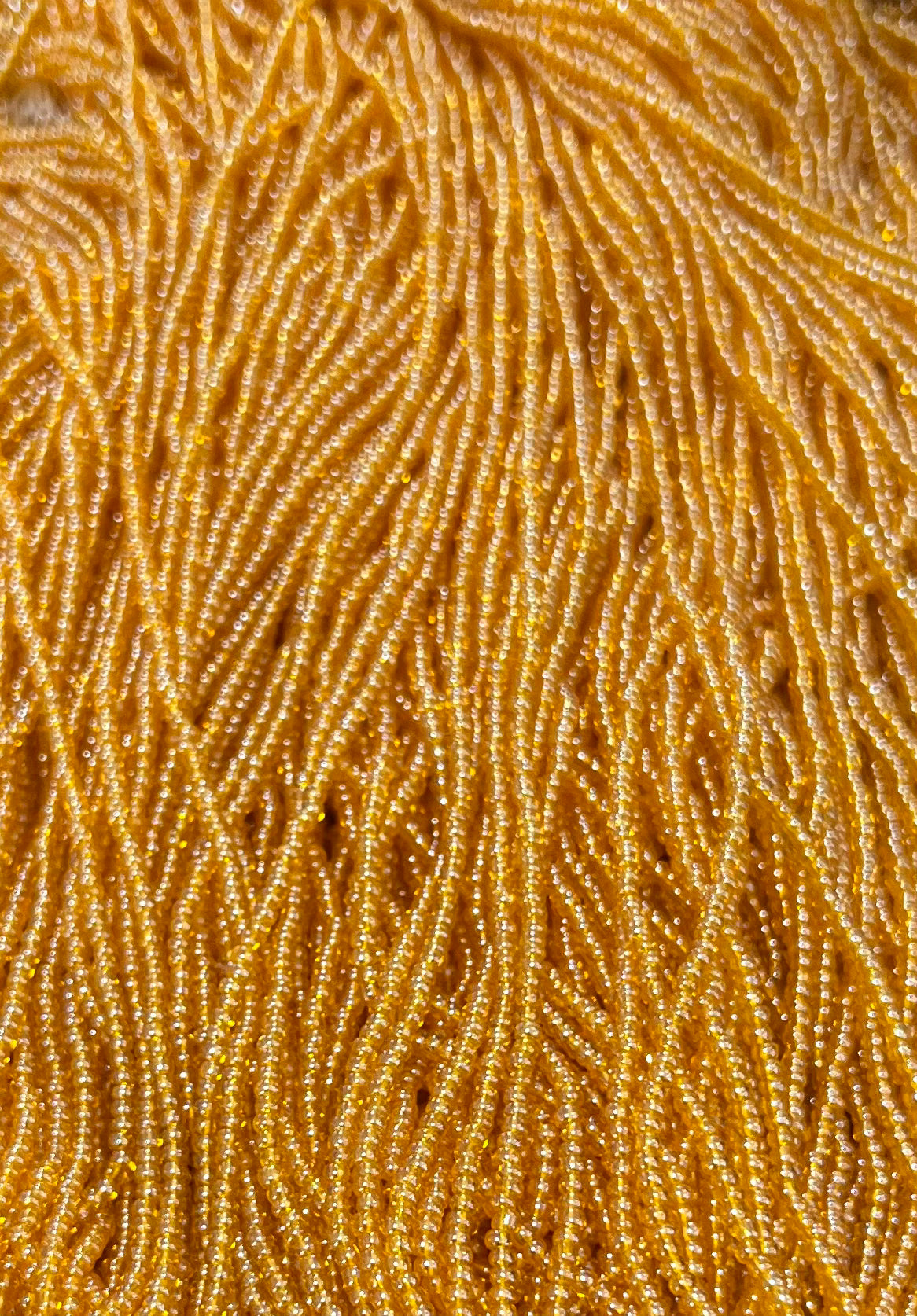 These beads are sold by the hank. Each hank has 12 strands with a total of approximately 4,000 beads. Lined up on a needle, roughly 17 beads = 1 inch (25mm).