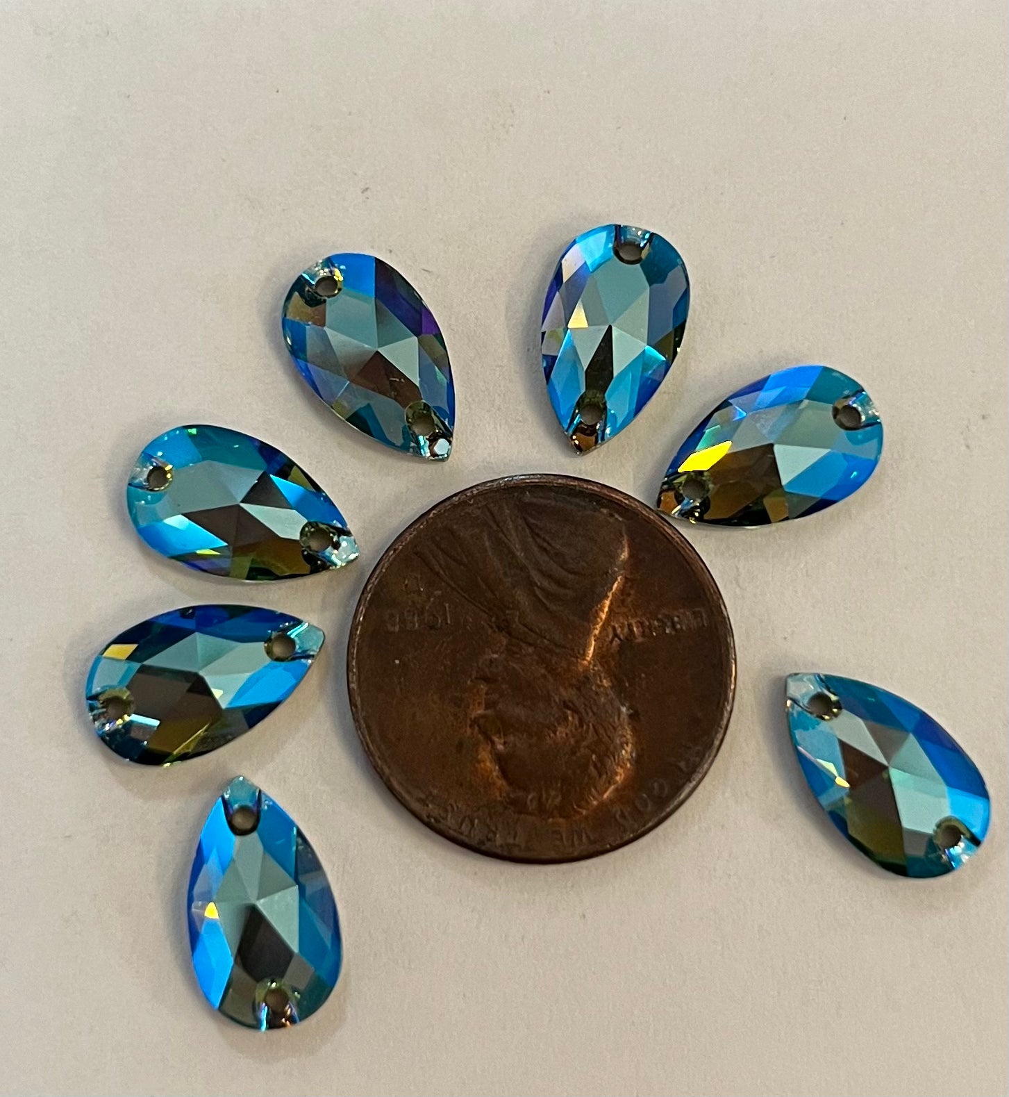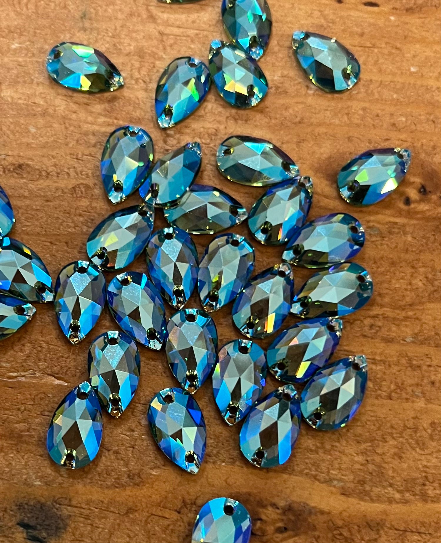 These are sew down crystals from Swarovski. They have 2 holes, a silver foil backing and are 12 x 7mm. They are often used to make flower shapes in earrings.