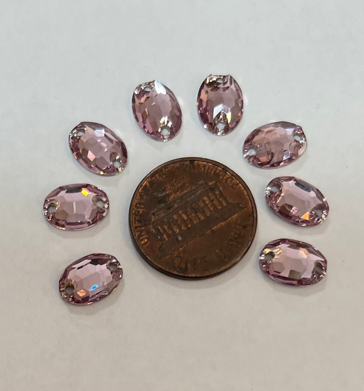 These are sew on crystals from Swarovski. They have 2 holes, a silver foil backing and are 10 x 7mm. They are often used to make flower shapes in earrings.