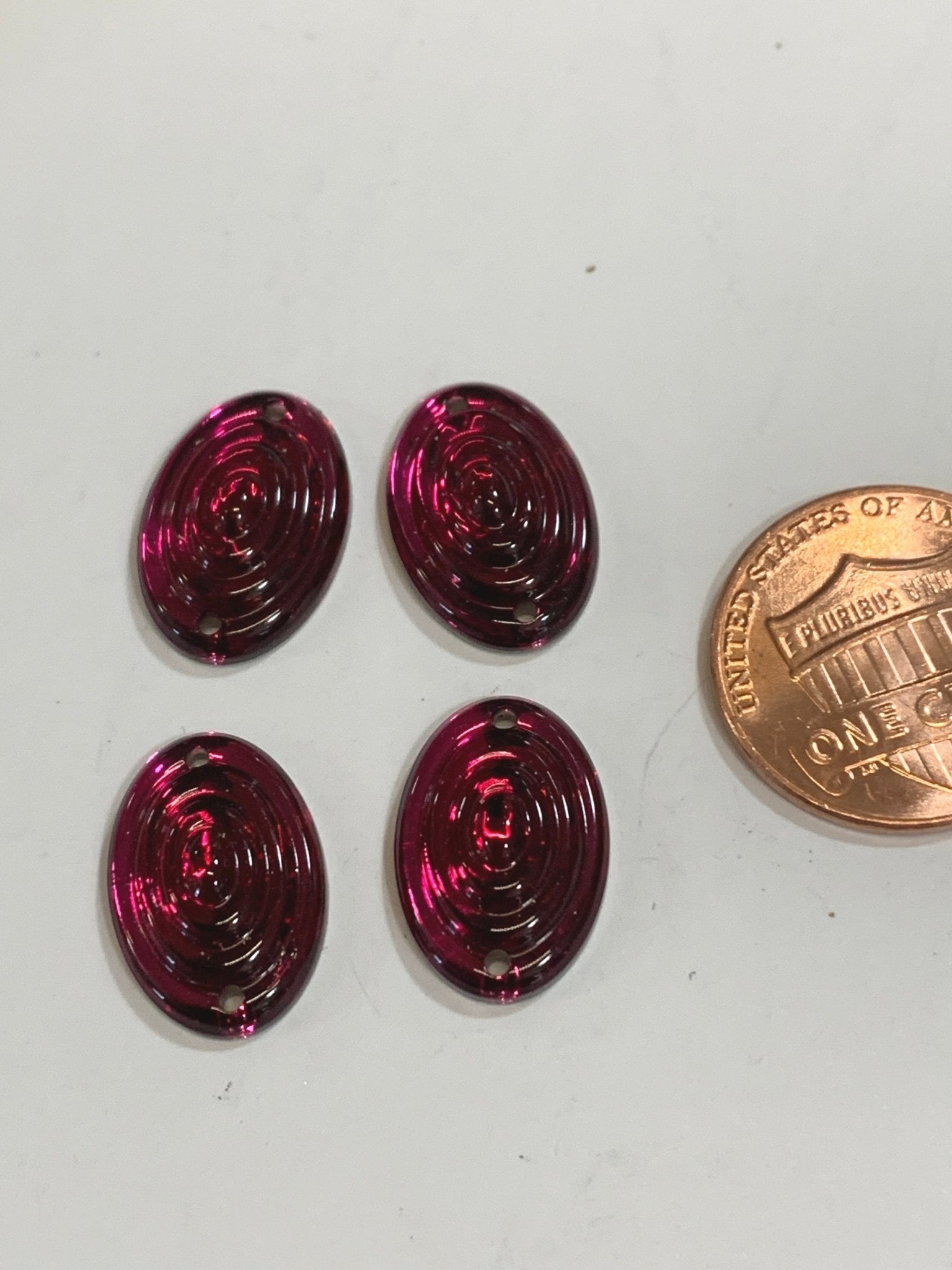 These are vintage sew down crystals from Swarovski. They have a swirl pattern on top. They are 16 x 10mm, have two holes and a silver foil backing.