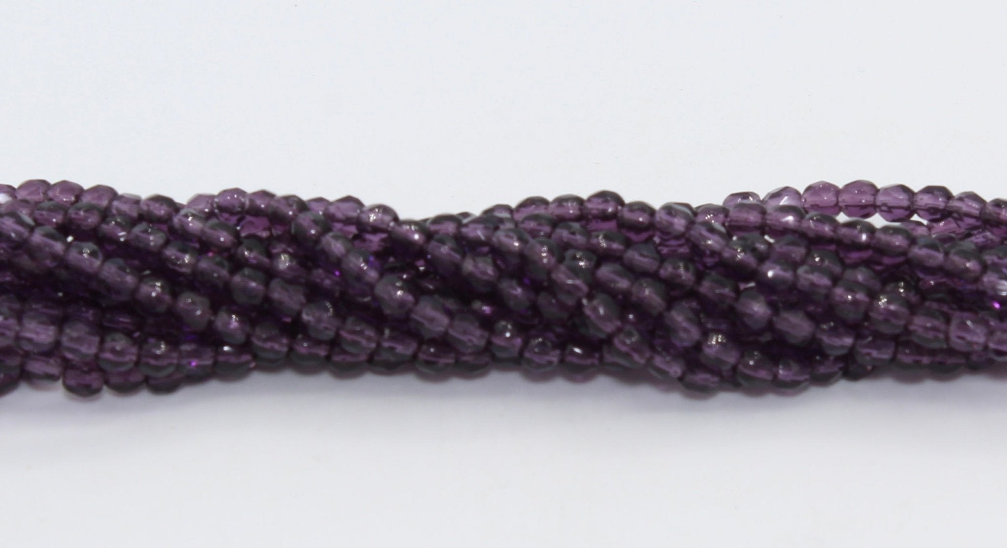 These 3mm Fire Polished beads are sold by the 6" (15cm) strand. Each strand has approximately 50 beads. The hole is approximately .5mm.