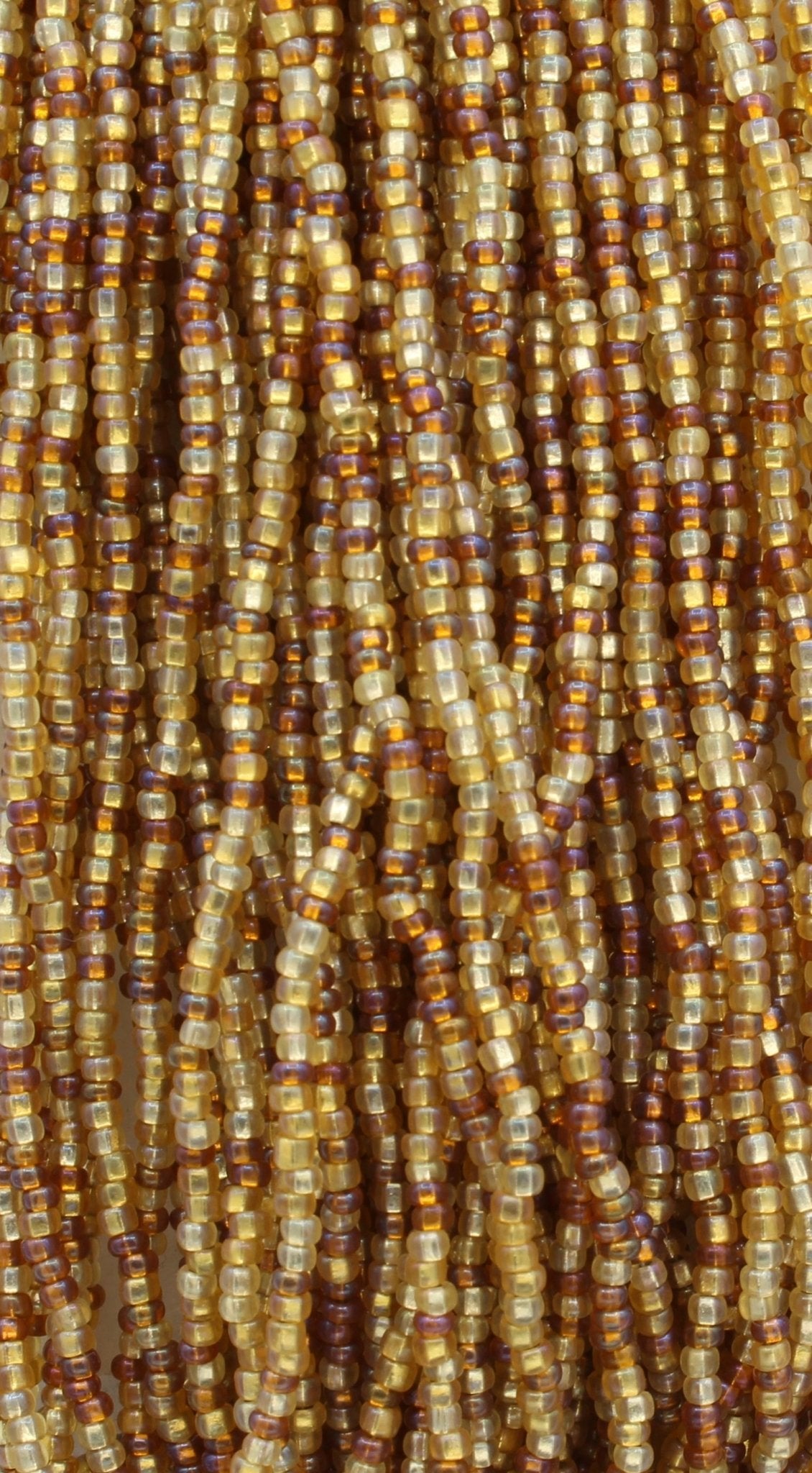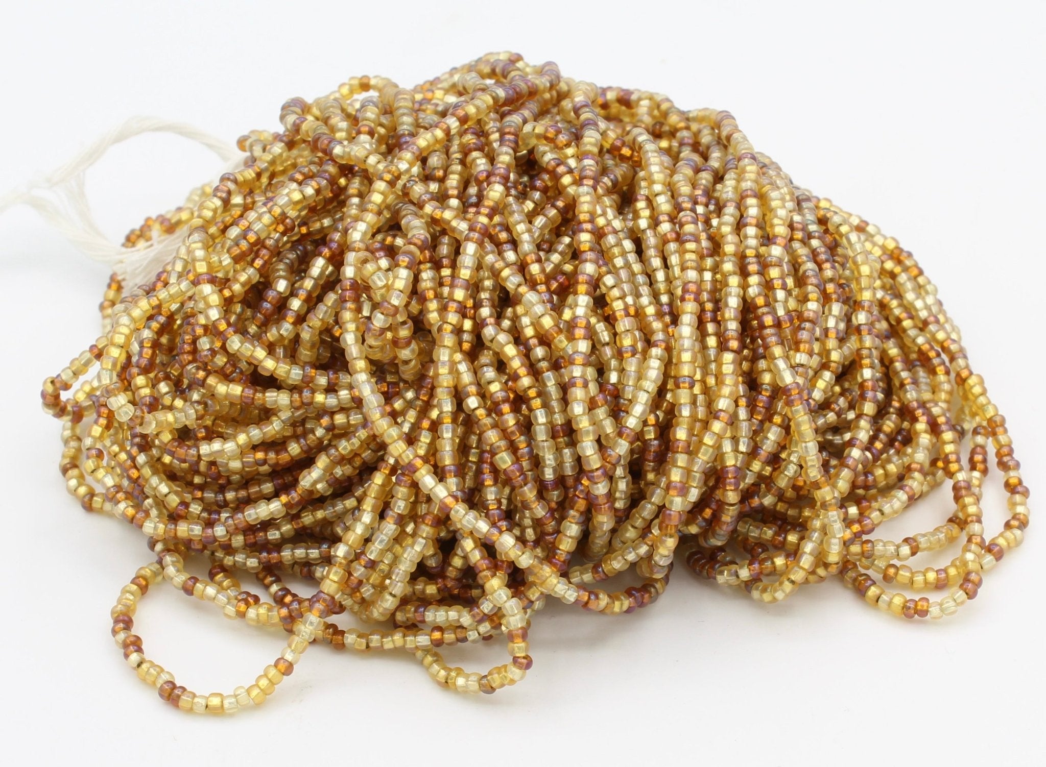 These beads are sold by the hank. Each hank has 12 strands with a total of approximately 4,000 beads. Lined up on a needle, roughly 17 beads = 1 inch (25mm).
