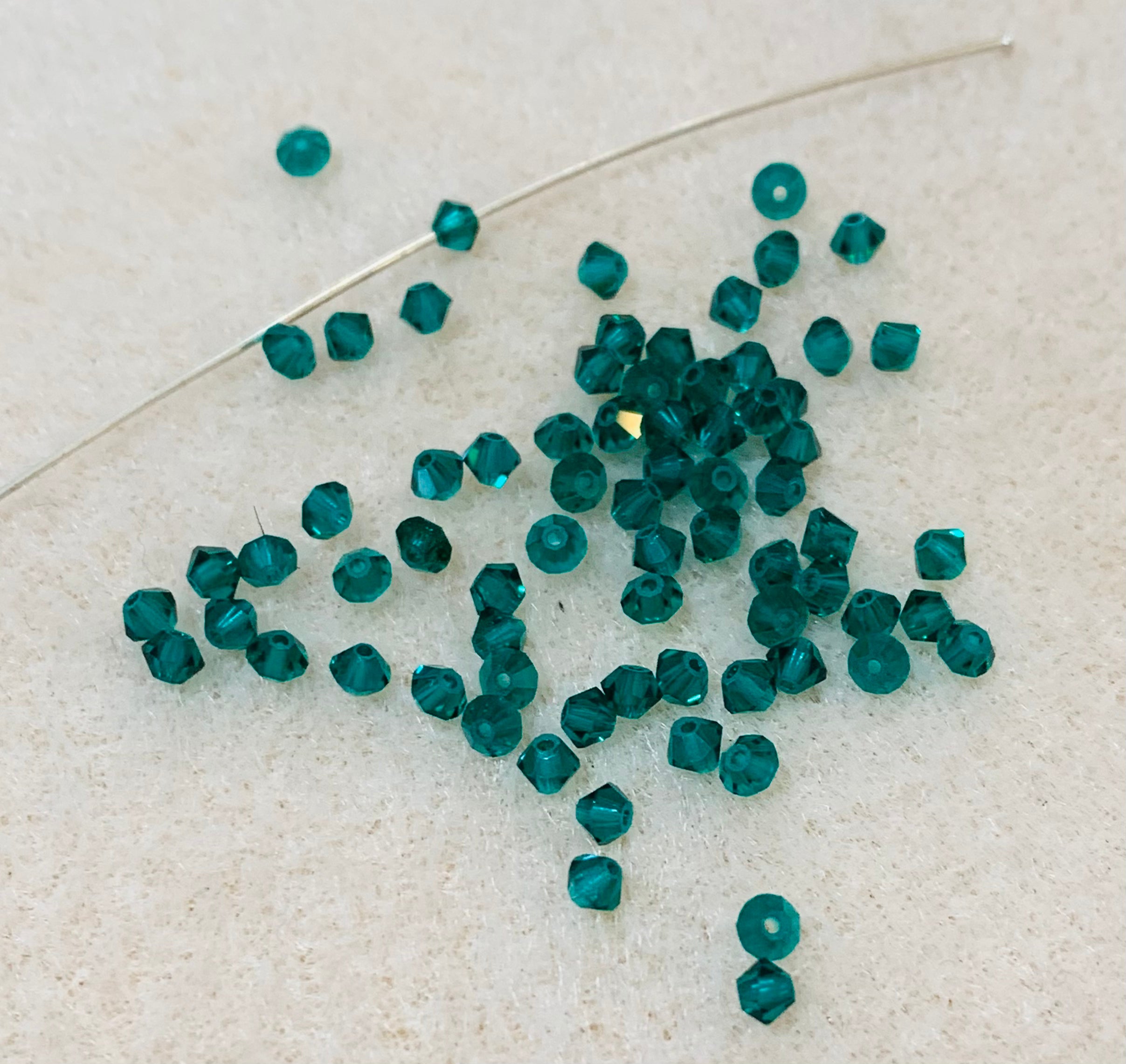 These Swarovski Crystal bicone beads are 3mm. They are sold in a 1/2 gross package (72 beads).