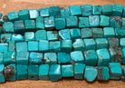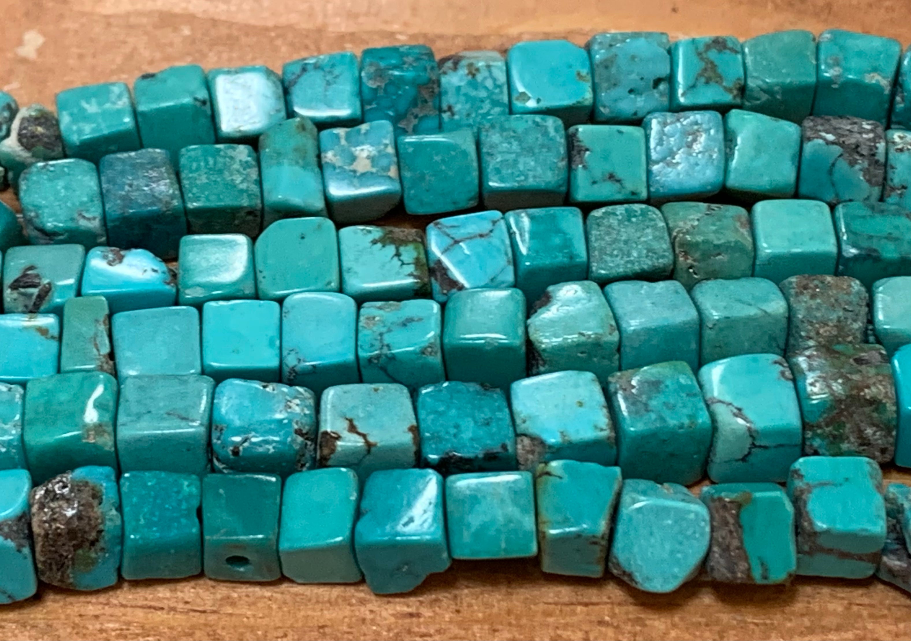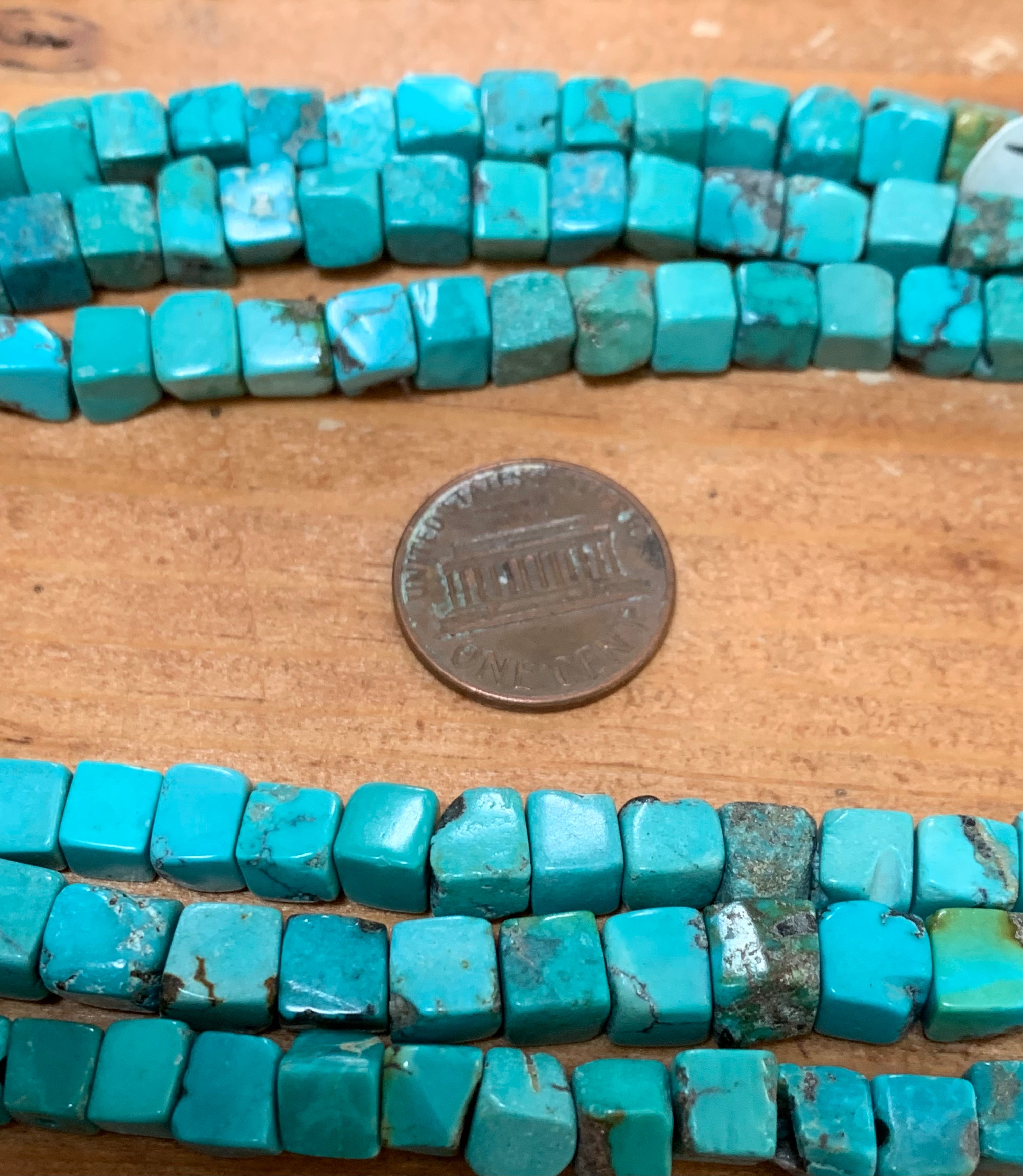 These Turquoise beads are shaped like cubes (irregular, not perfect cubes) and are approximately 6mm.