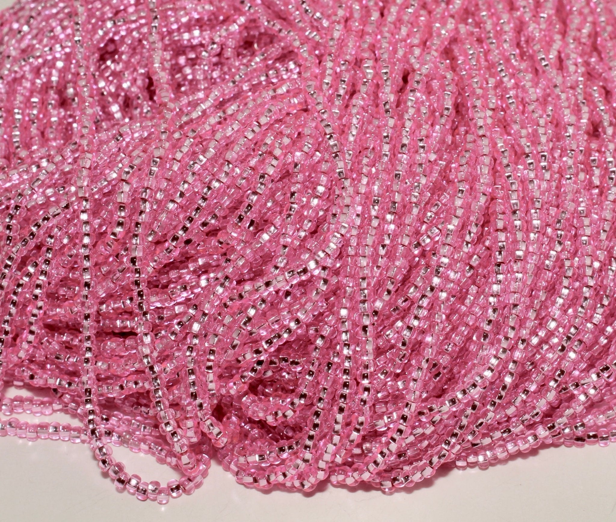 These beads are sold by the hank. Each hank has 12 strands with a total of approximately 4,000 beads. Lined up on a needle, roughly 17 beads = 1 inch (25mm).