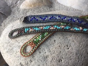 These are the instructions for the Western Hills Wrap Cuff, a beading project that uses bead loom/wrap bracelet stitch. You will also learn to tie Josephine Knots to start and end the bracelet, and simple macrame at the end of the project. Kits are available for this project; please add that item to your cart separately.