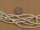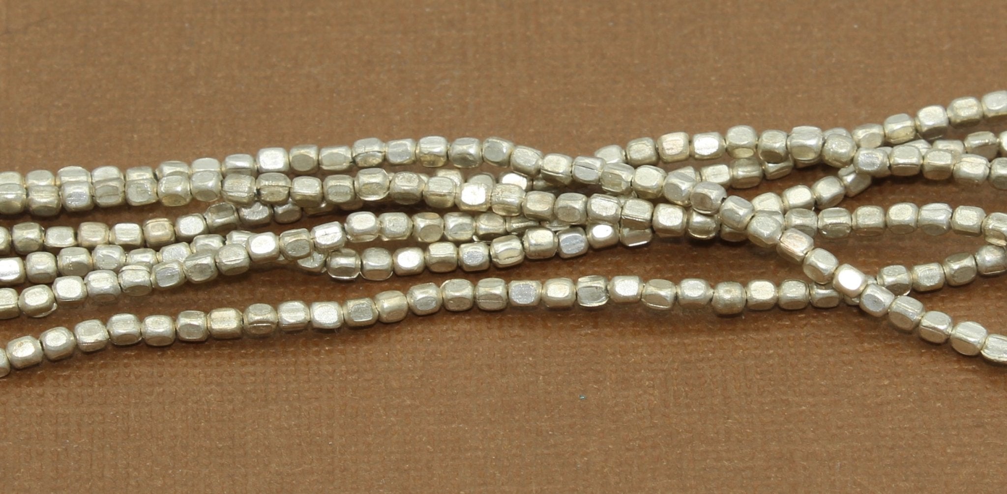 These white brass beads are approximately 2.5mm x 2mm and have a rounded cube shape. They are ideal for delicate stringing projects, earrings or to edge beadwork.