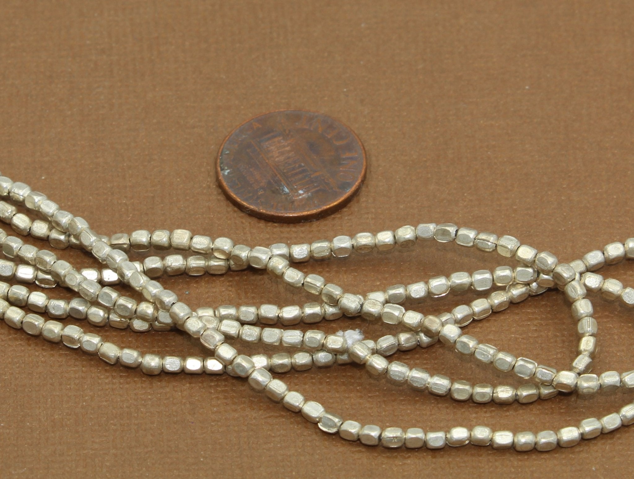 White Brass Rounded Cube Beads - 2.5mm x 2mm