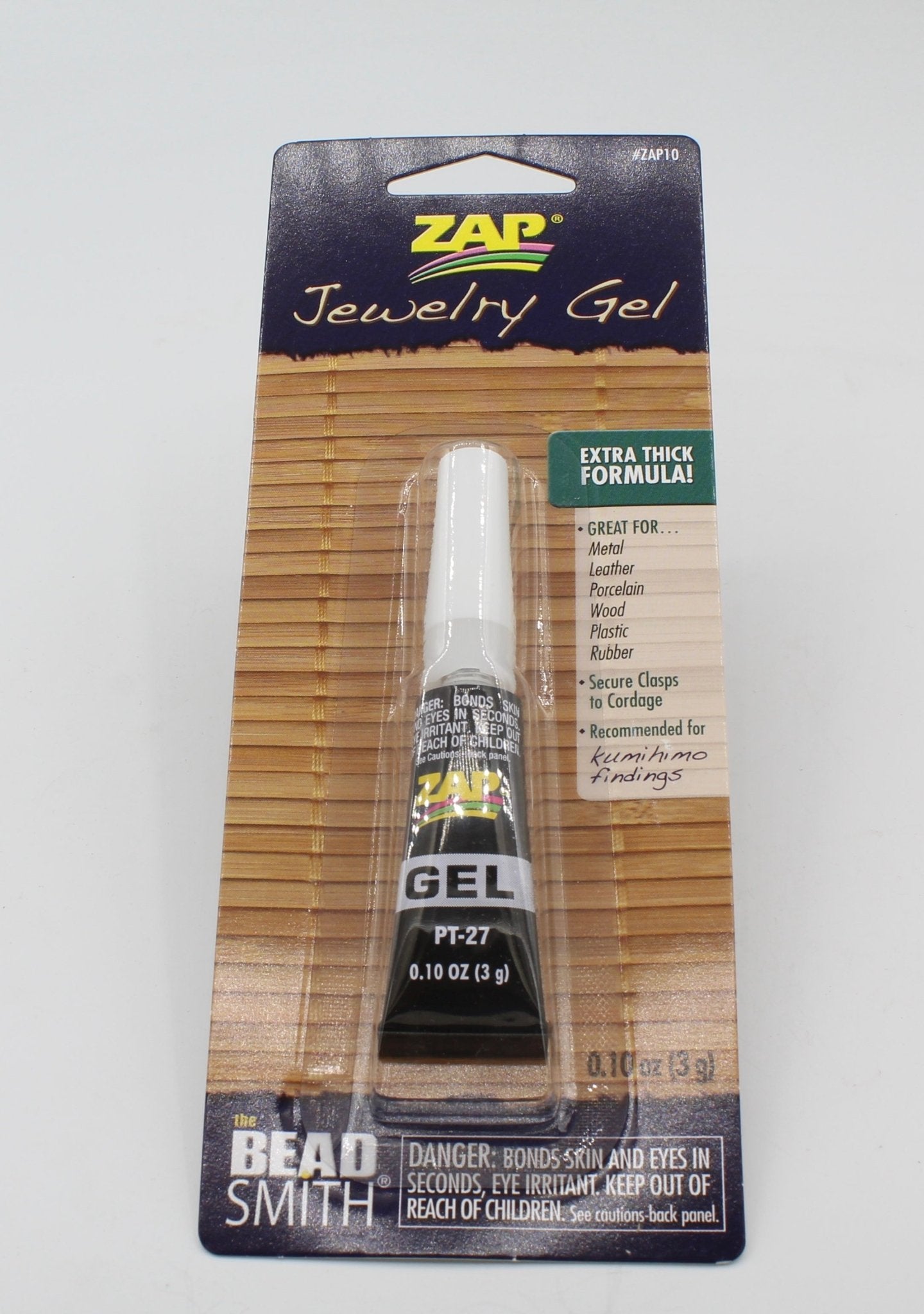Zap Glue is a very fast drying adhesive used to attach different types of materials together. It has a small tip for easy application and it works very well with metal, leather and beadwork.